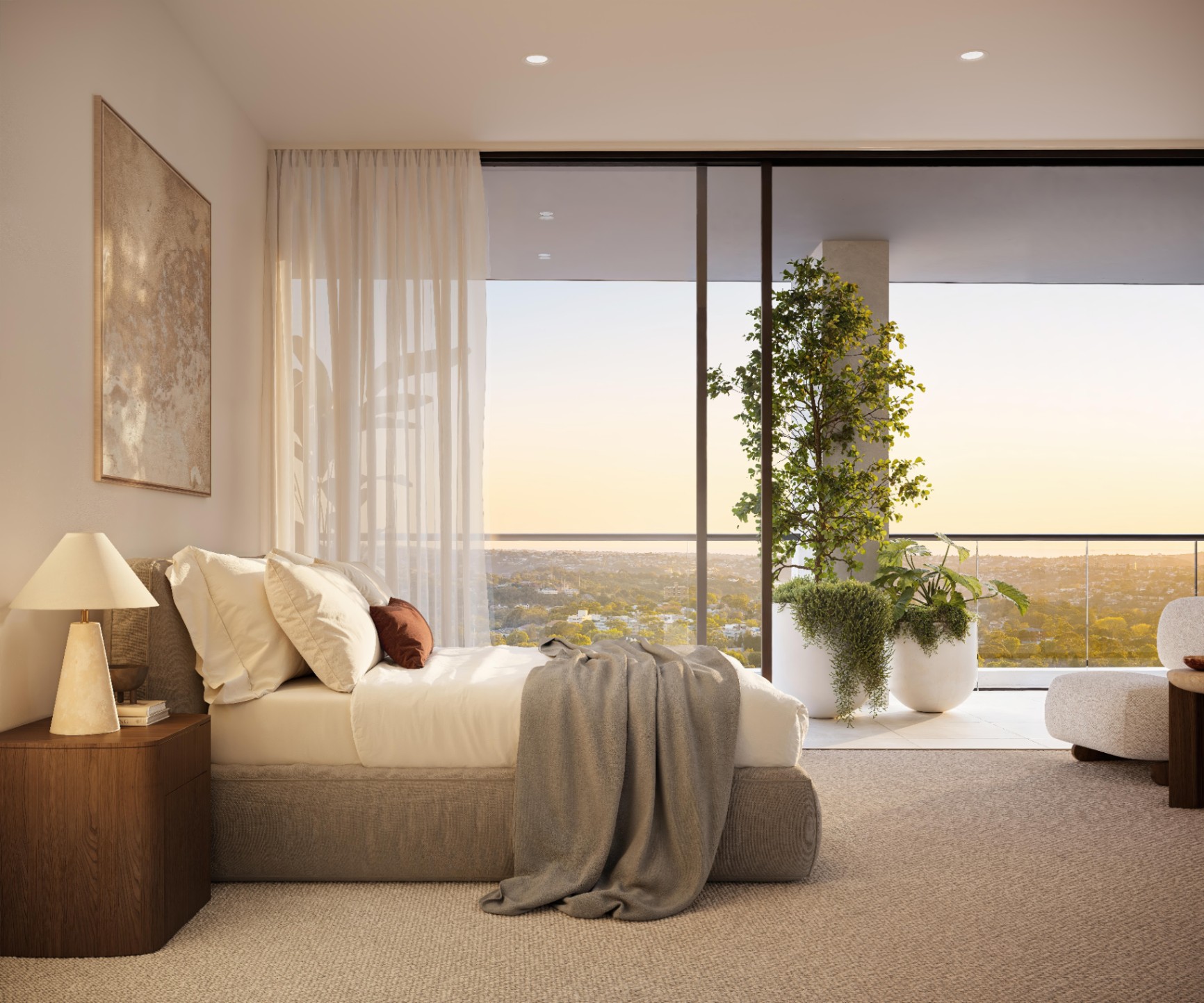 - Sunlit, open-plan interiors with panoramic outlooks and quality finishes